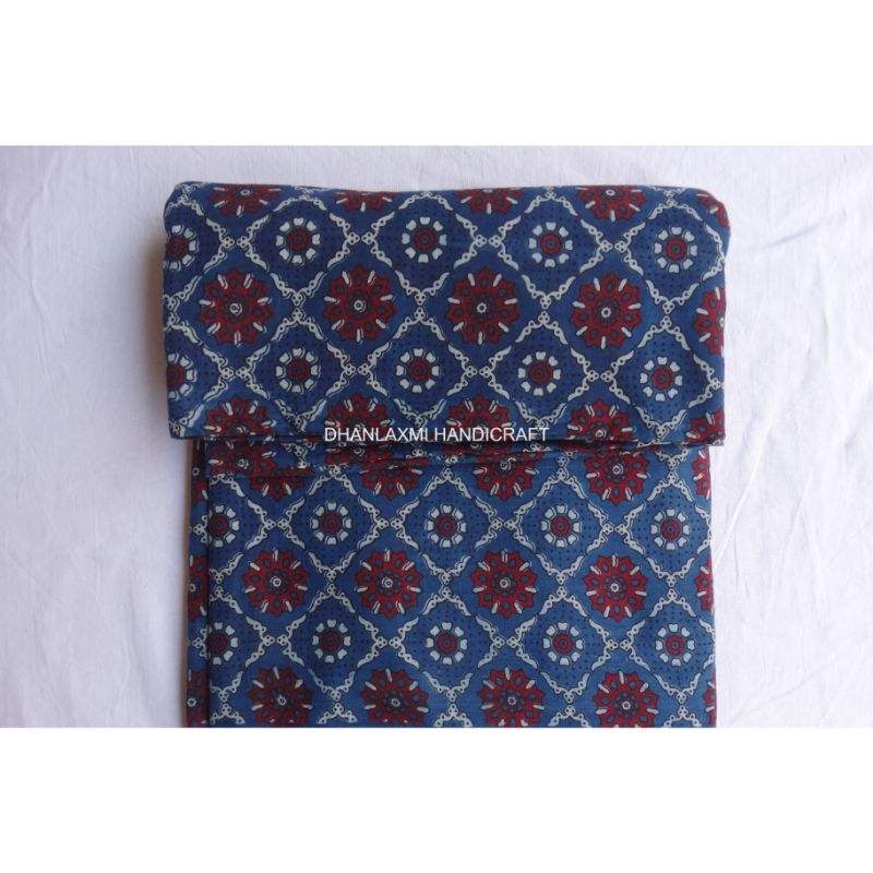 Indigo Printed Dress Material Ajrakh Lounge Wear Indian 100% Cotton Traditional Running Craft Fabric