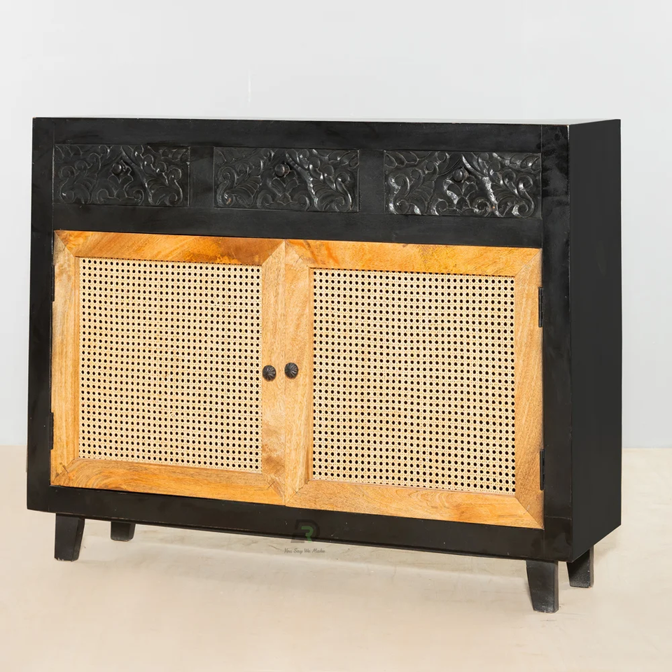 Indo Traditional Modern Multi-purpose Accent Console Storage Buffet Cabinet Wooden Carved Sideboard Living Room Hospital