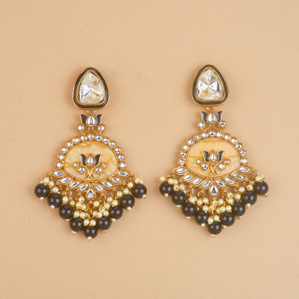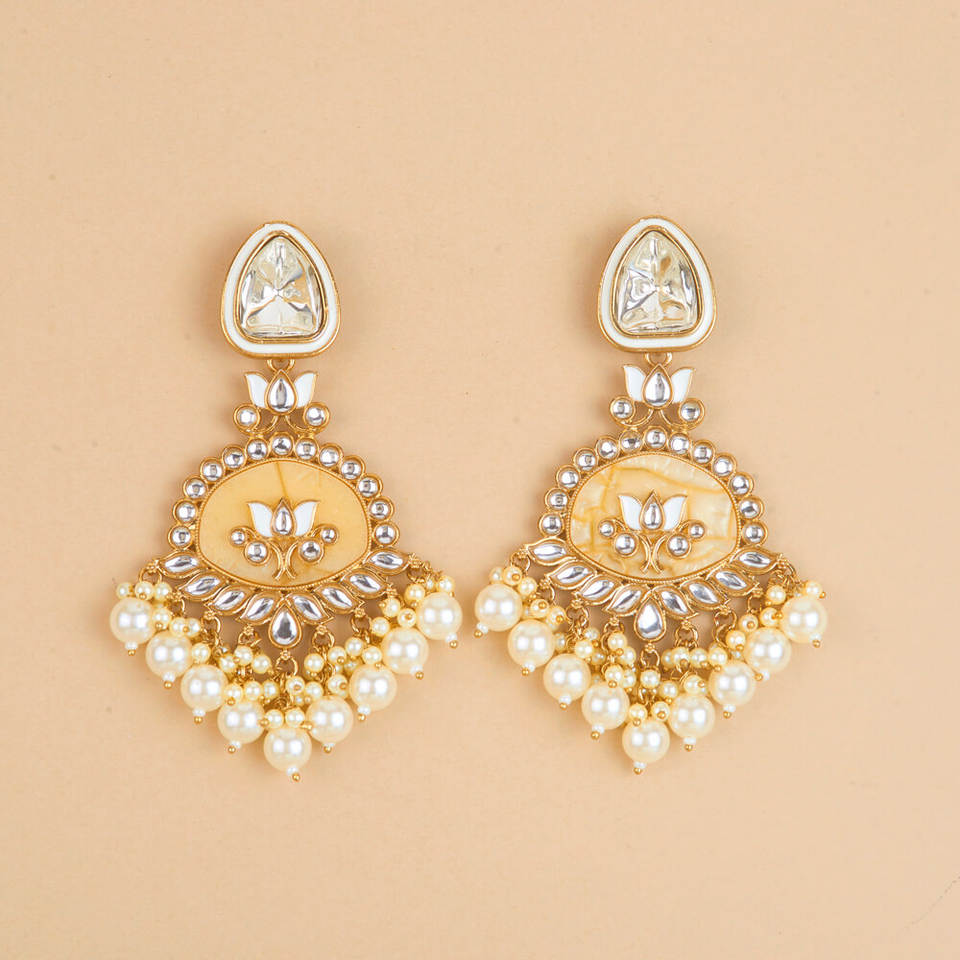 Indo-Western Fashion Chandelier Earrings Artificial Mother of Pearl Jewellery with Mehndi Plating