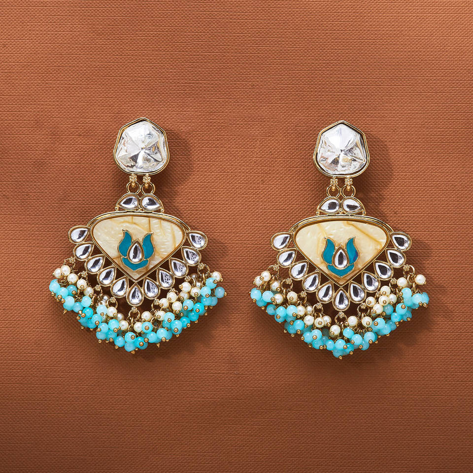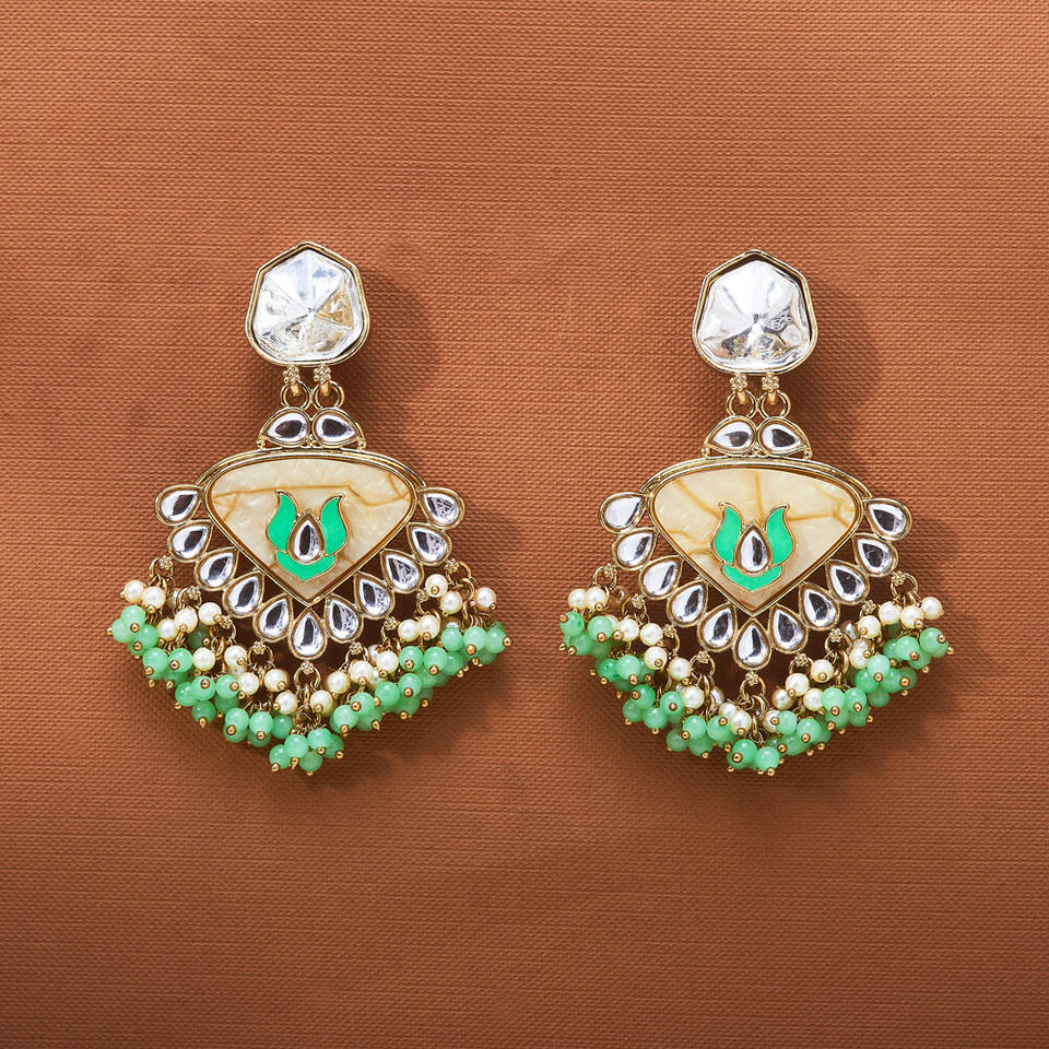Indo Western Fashion Chandelier Earrings Classic Meenakari Look with Mother of Pearl and Mehndi Plating