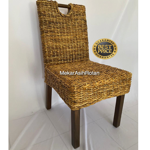 Indonesia Wholesale Natural Water Hyacinth Best Seller Germany Dining Chair with Mahogany Wooden Frame
