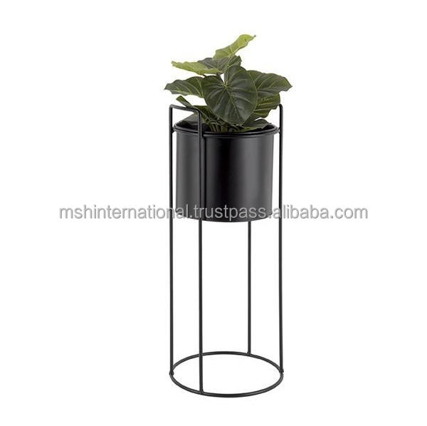 Indoor Home and Garden Decor Flower Planter Pot Stand With Planter Golden Black and Waite