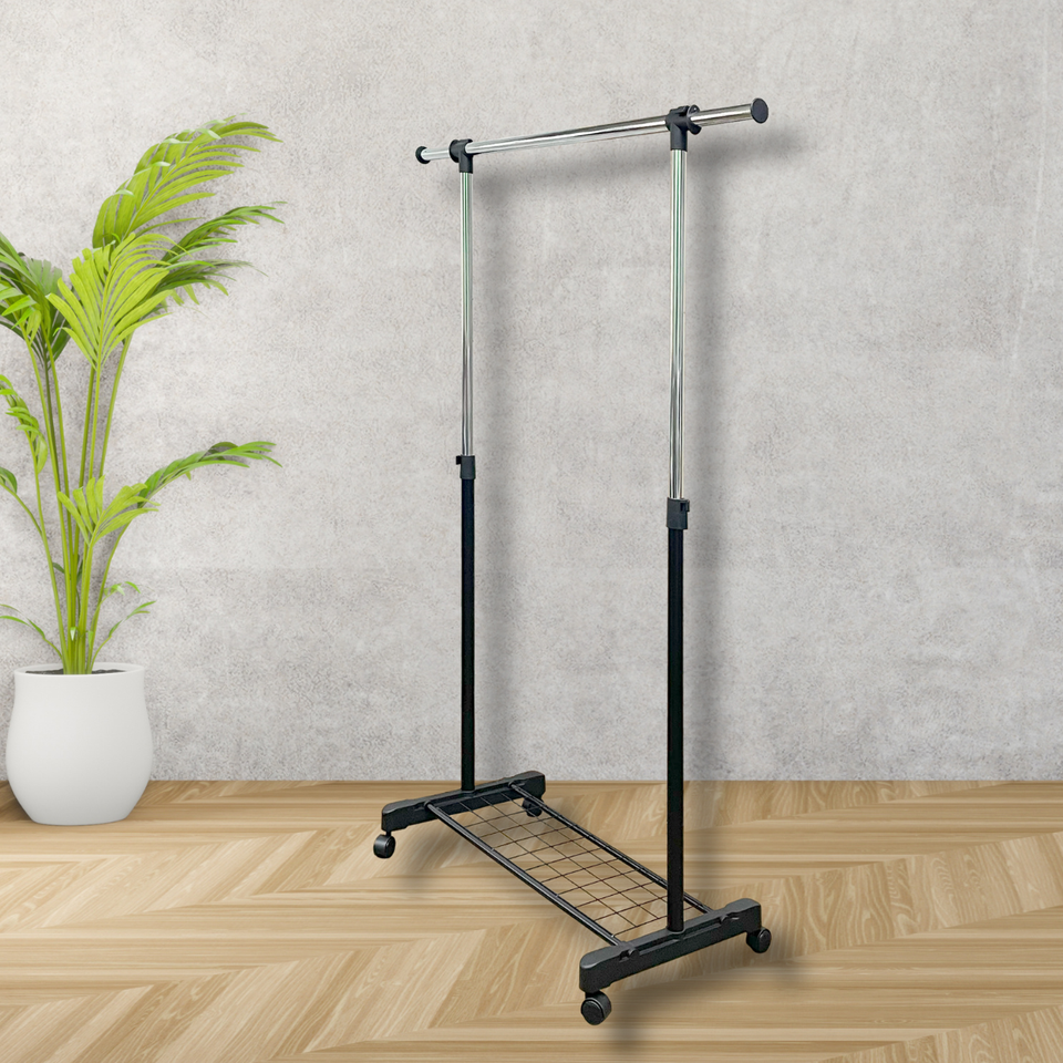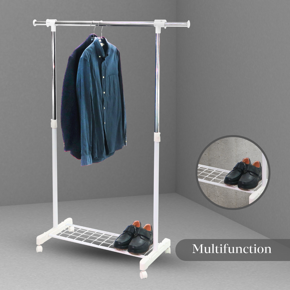 Indoor Mesh Shelf Clothes Storage Wheel Display Garment Rack