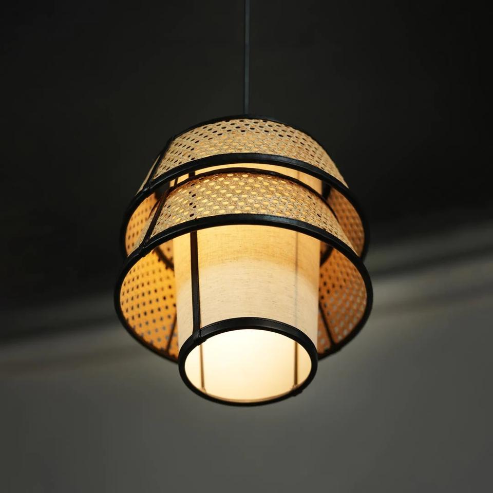 Indoor Modern Creative Bamboo Pendant Light Coloful Decor Hanging Lamp Rattan Round Ball Ceiling Pendant Lamps