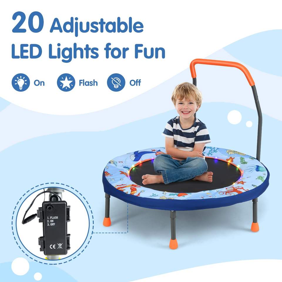 Indoor Outdoor Kids Trampolines Foldable LED Lighting Children Exercise Rebounder 36 Inch Mini Trampoline for Toddlers