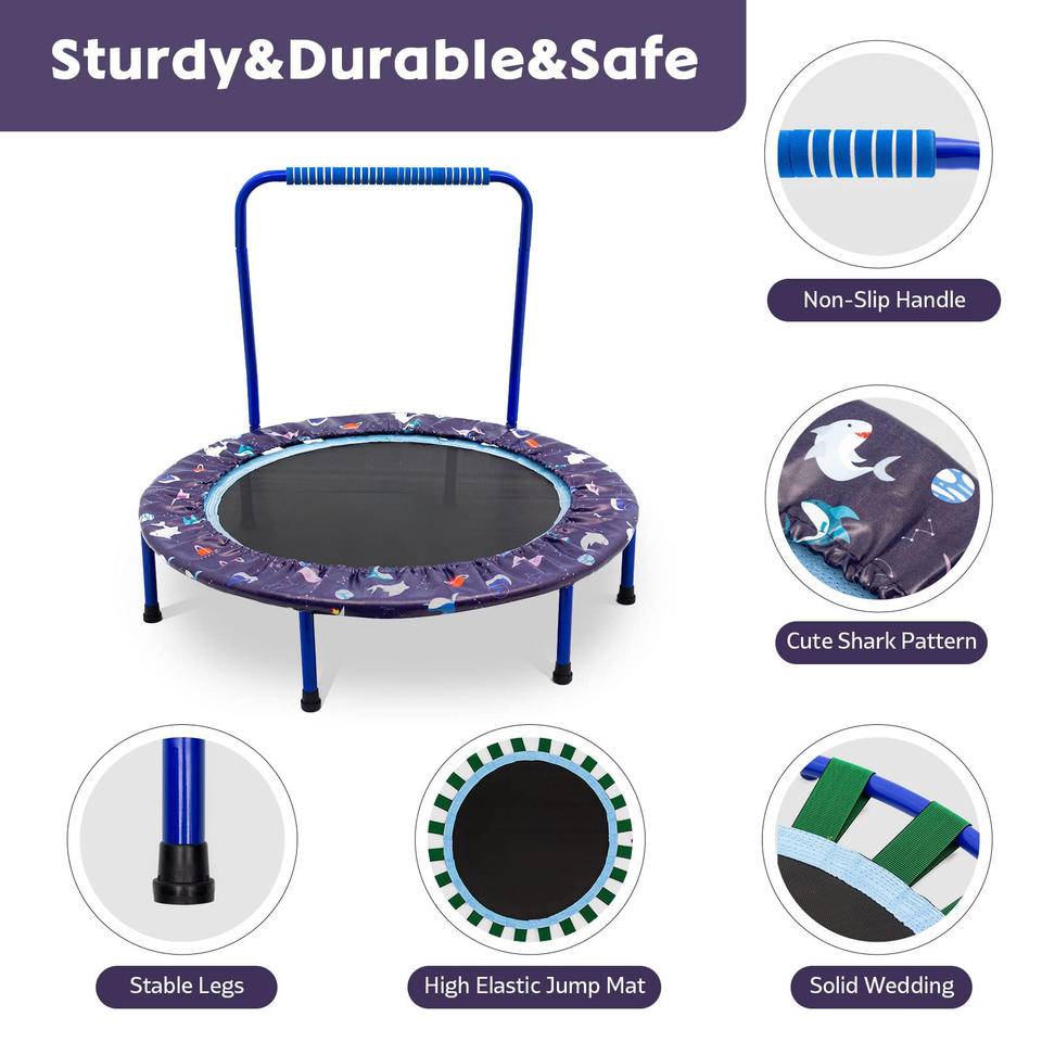 Indoor Outdoor Round Bounce Jumper Jumping Mat 38 Inches Kids Trampoline Folding Mini Toddler Trampoline with Handle