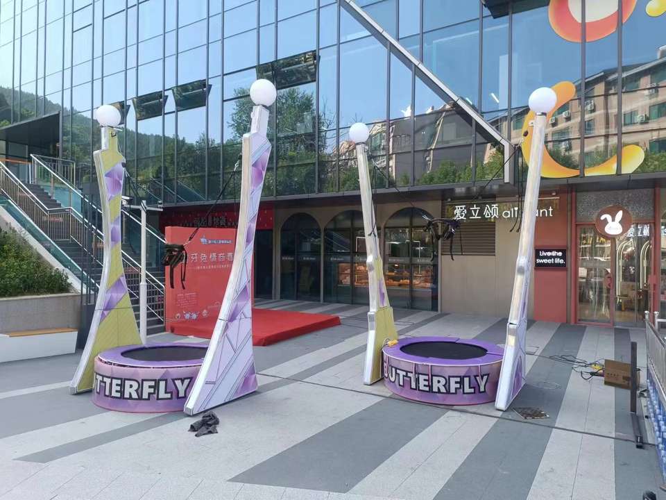 Indoor Outdoor Single Electric Bungee Trampoline Bungee Jumping Bed with LED Light and Music for Kids Eiffel Tower design