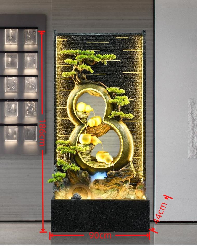 Indoor Rockery Waterfall with LED Lights & Pine Tree - Large Zen Garden Decor for Commercial Spaces