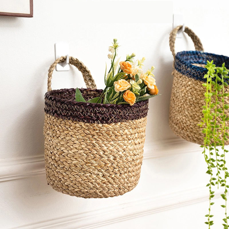 Indoor Seagrass Storage Baskets Hanging Flower Pot Stand with Water Hyacinth Planter Stand Basket