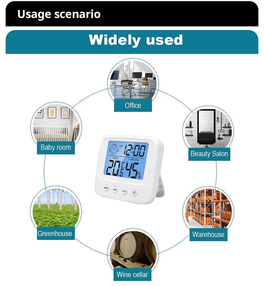 Indoor Thermometers Digital Hygrometer Room Thermometer and Humidity Gauge with Clock Humidity Temperature Function Electronic