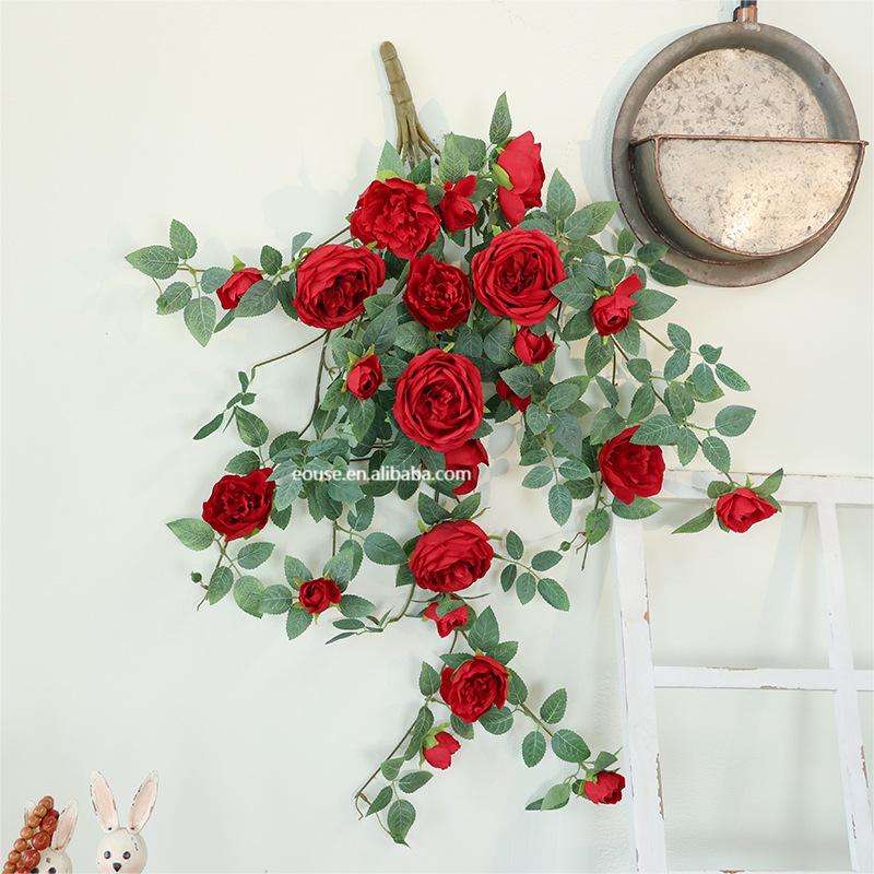 Indoor Vine Home Wedding Artificial Rose Wall Hanging Garden Decoration for hotel wedding event