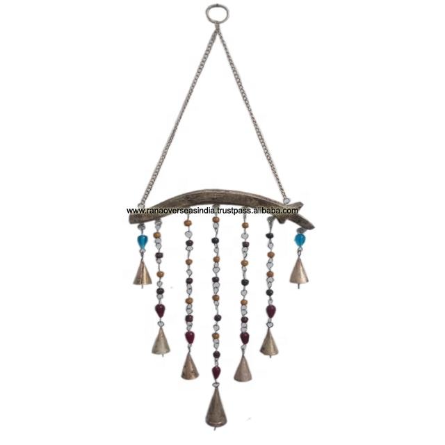 Indoor and Outdoor Decorative Brass Wind Chimes With Three Color Beaded & Cone Shape Bells