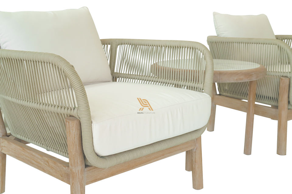 Indoor and Outdoor Lounge Chair Suitable for Patio or Living Room with Woven Rope and Powder Coated Aluminum Frame.