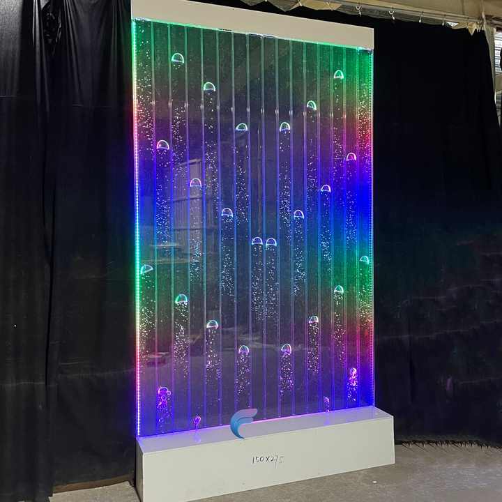 Indoor bar used lounge LED glowing swirl water bubble wall night club background furniture