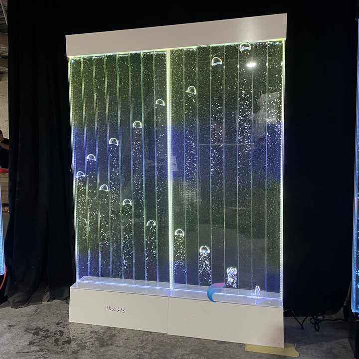 Indoor bar used lounge LED glowing swirl water bubble wall night club background furniture