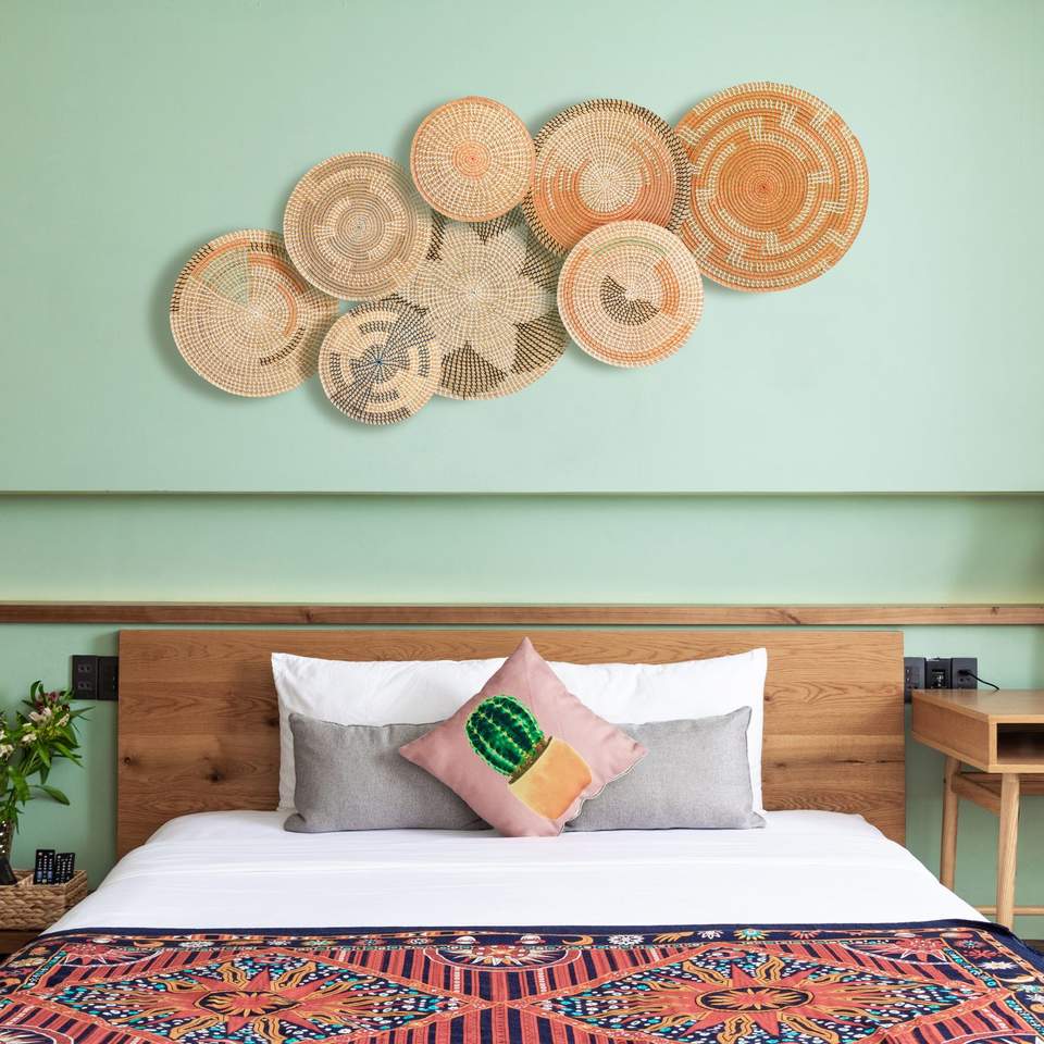 Modern Luxury Beige Seagrass Wall Basket Elegant Indoor Wall Decor Set Contemporary Design Style