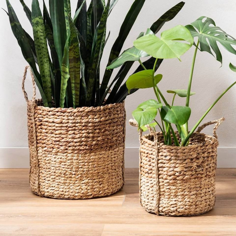 Indoor plant accessories natural water hyacinth planter top selling weave basket pot planters