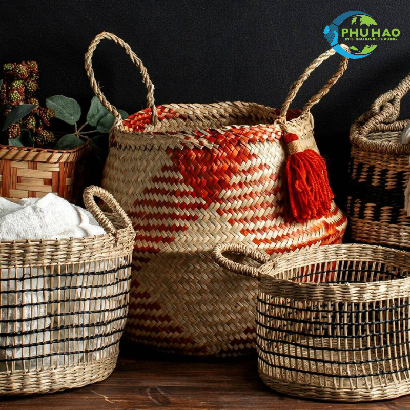 Indulge in Coastal Charm with a Handwoven High-quality Vietnamese SEAGRASS BELLY BASKET for Laundry Storage and Plant Pot
