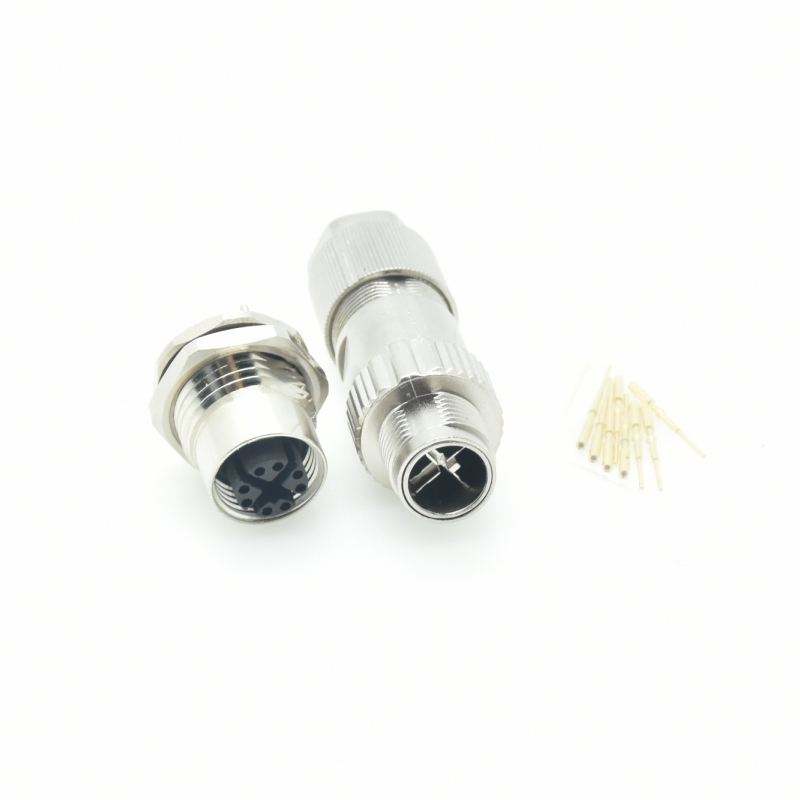 Industrial 10Gb LAN 8 Pin M12 X Code Connector round Metal Cable Mount DIN Type for Power Applications