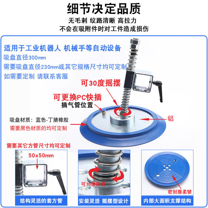 Industrial 230 300mm Stainless Steel Plate Vacuum Lifter Laser Cutting Machine Loading Swing Suction Cup Product Vacuum Lifters