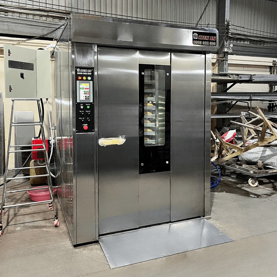Industrial 32 Tray Rotary Baking Oven For Commercial Bread Production With Even Heat Circulation Stainless Steel Design For High