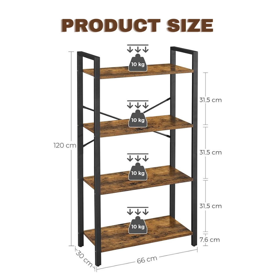 Industrial Bookshelf with Steel Frame, 4-Tier Storage Rack with Adjustable Feet for Living Room, Kitchen, Office | OEM & ODM
