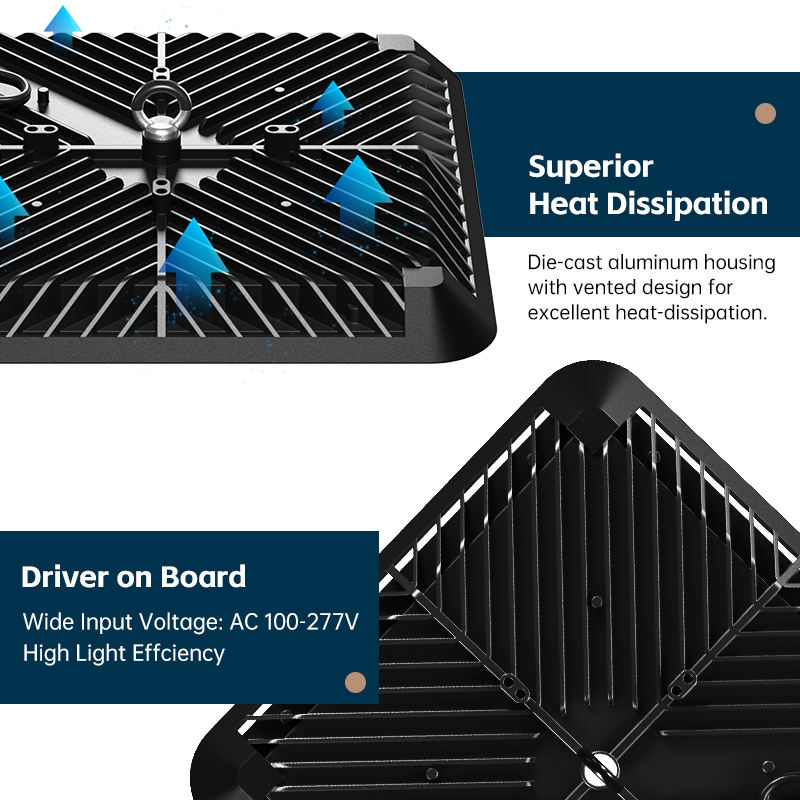 Industrial Ceiling Lighting Hanging Square UFO High Bay LED Lights 150W IP65 for Warehouse and Workshop Lighting Fixtures