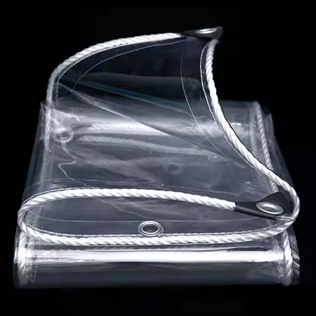 Industrial Coated Pattern Clear Vinyl Tarpaulin Patio Curtain Outdoor Transparent Fabric with Zipper and Twist Lock