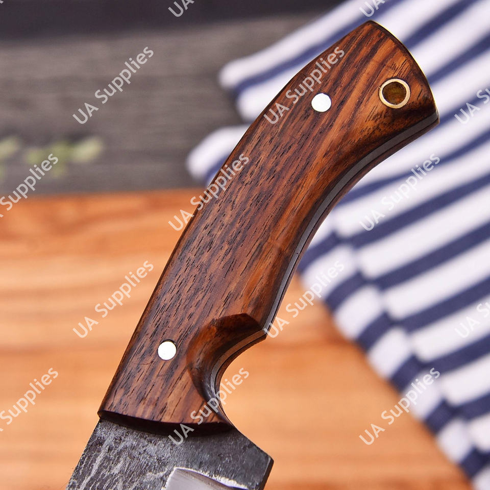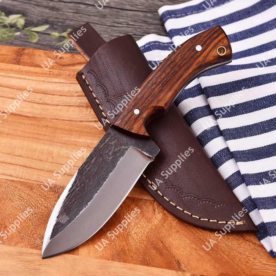 Industrial DIY OEM Hand Forged 1095 Steel Razor Sharp Outdoor Bushcraft Fixed Blade Camping Knife Rosewood Handle Leather Sheath