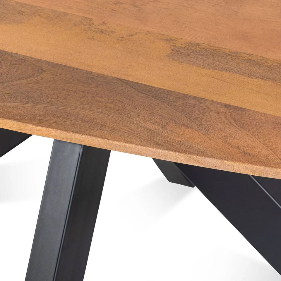 Industrial Danish Oval Shape Solid Mango Wooden Natural Grain Finish Black Matt Metal Base Rustic European Kitchen Dining Table