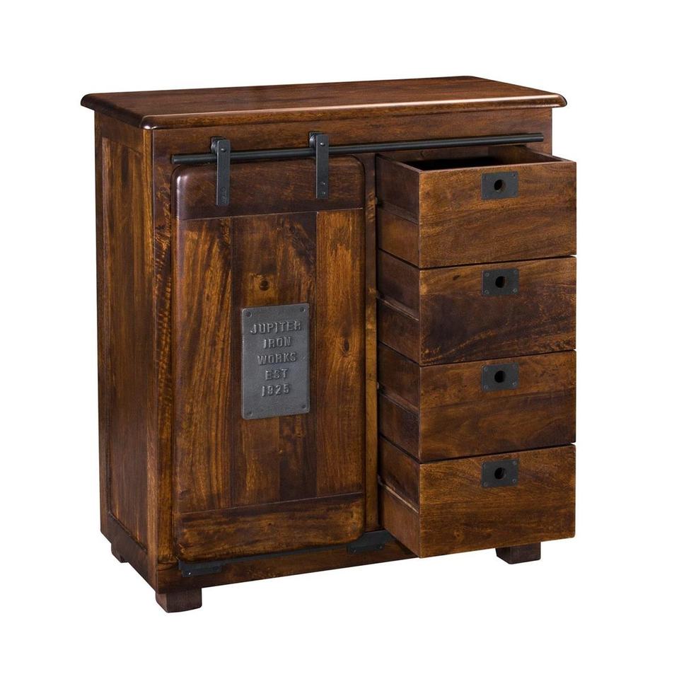 Industrial Design Solid Mango Wood Stain Finish Natural Jupiter Sliding Doors With Shelves Storage Drawers Living Room Cabinet