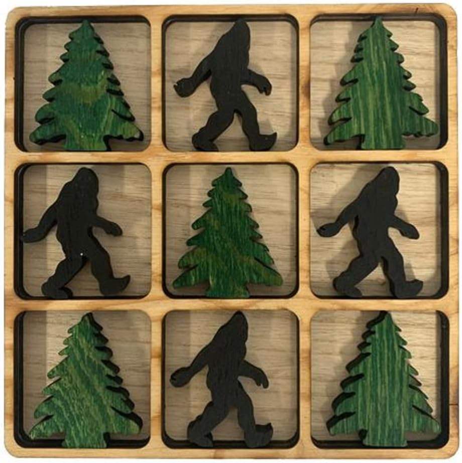 Industrial Factory Sale Tic Tac Toe 10 Wood Pieces Plus Board Game Pine Trees and Bigfoot