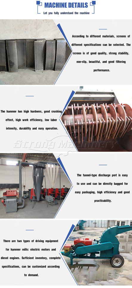 Industrial Forestry Wood Hammer Mill Shredder Mulcher Wood Chipper Machine New Motor High Productivity 220V/380V