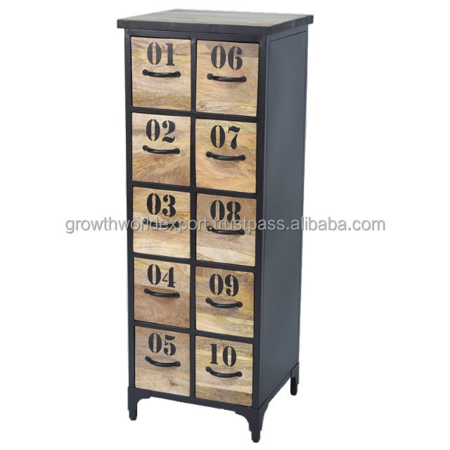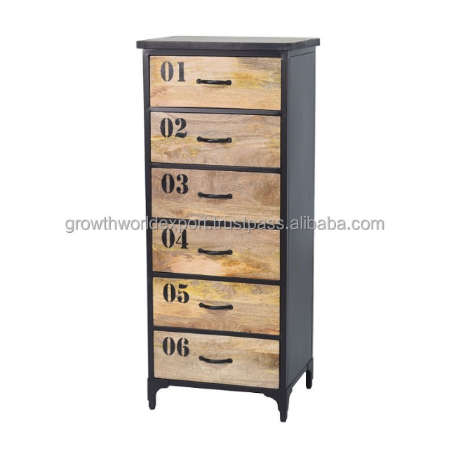 Product name:Industrial Chest of drawer iron body & wooden Drawer Furniture