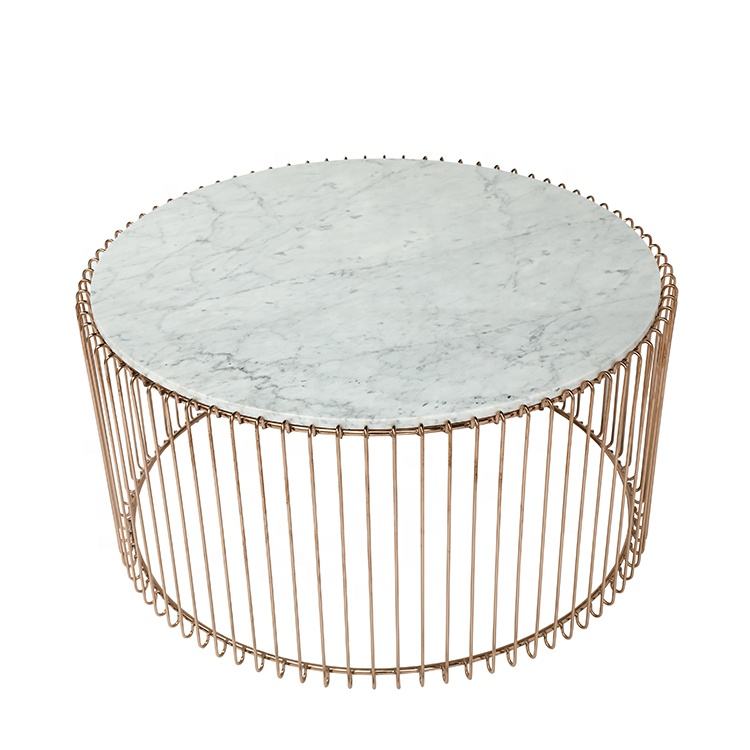 Modern Industrial Style Coffee Table with Natural White Marble Round Top & Solid Wood Base for Center or Living Room Furniture