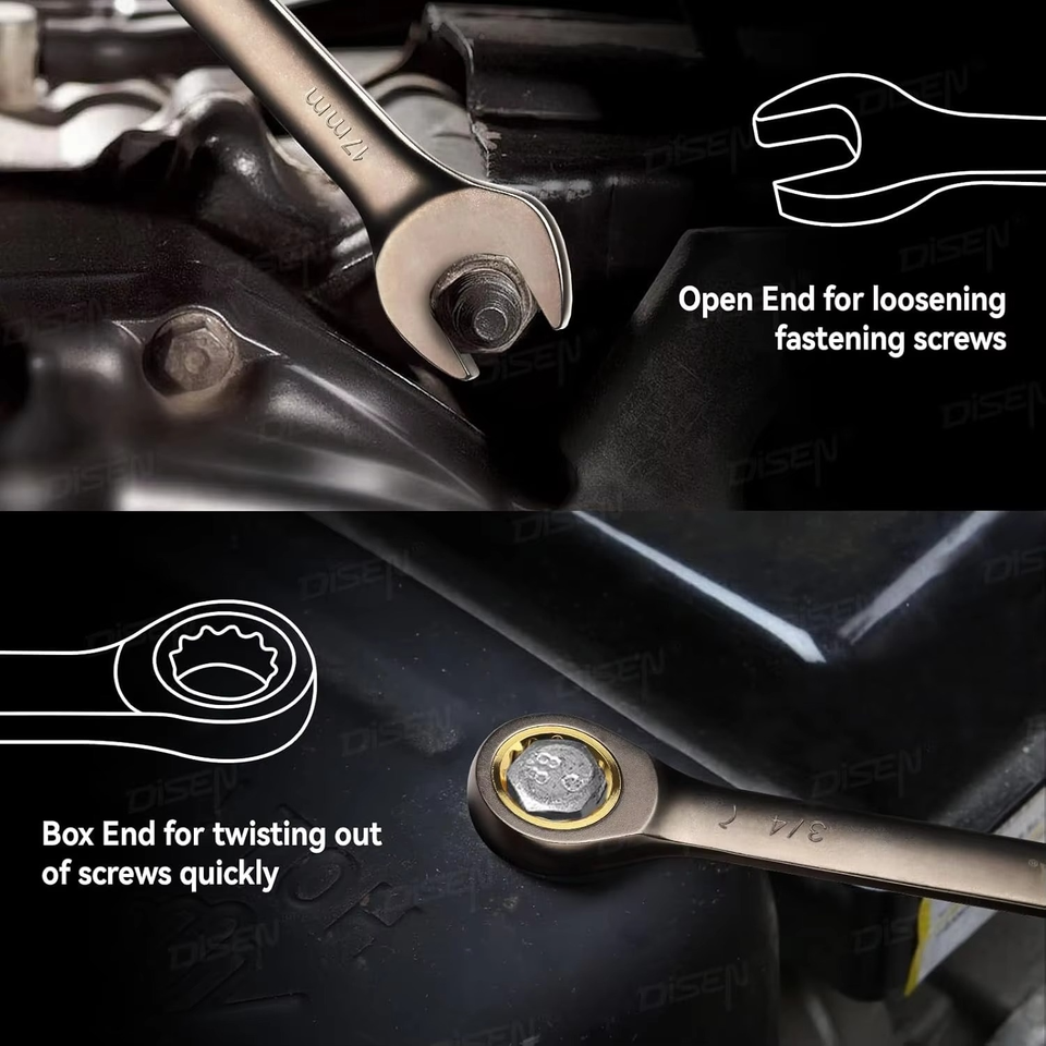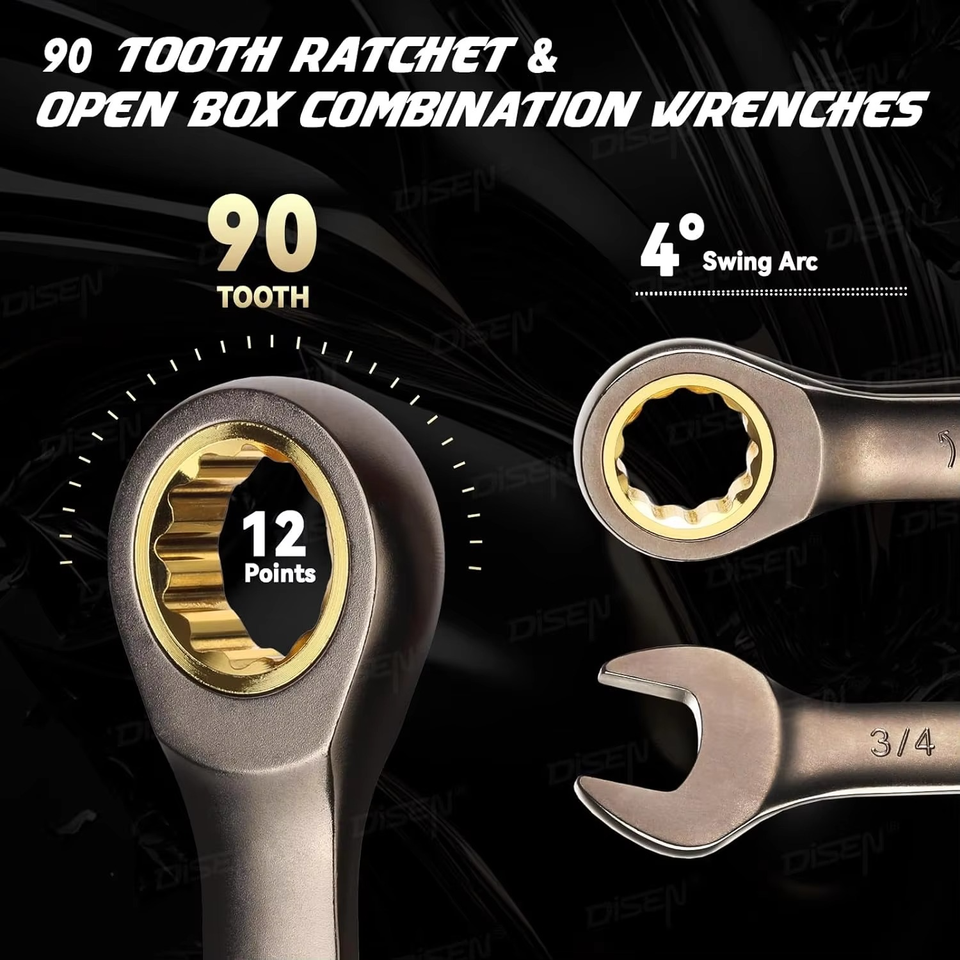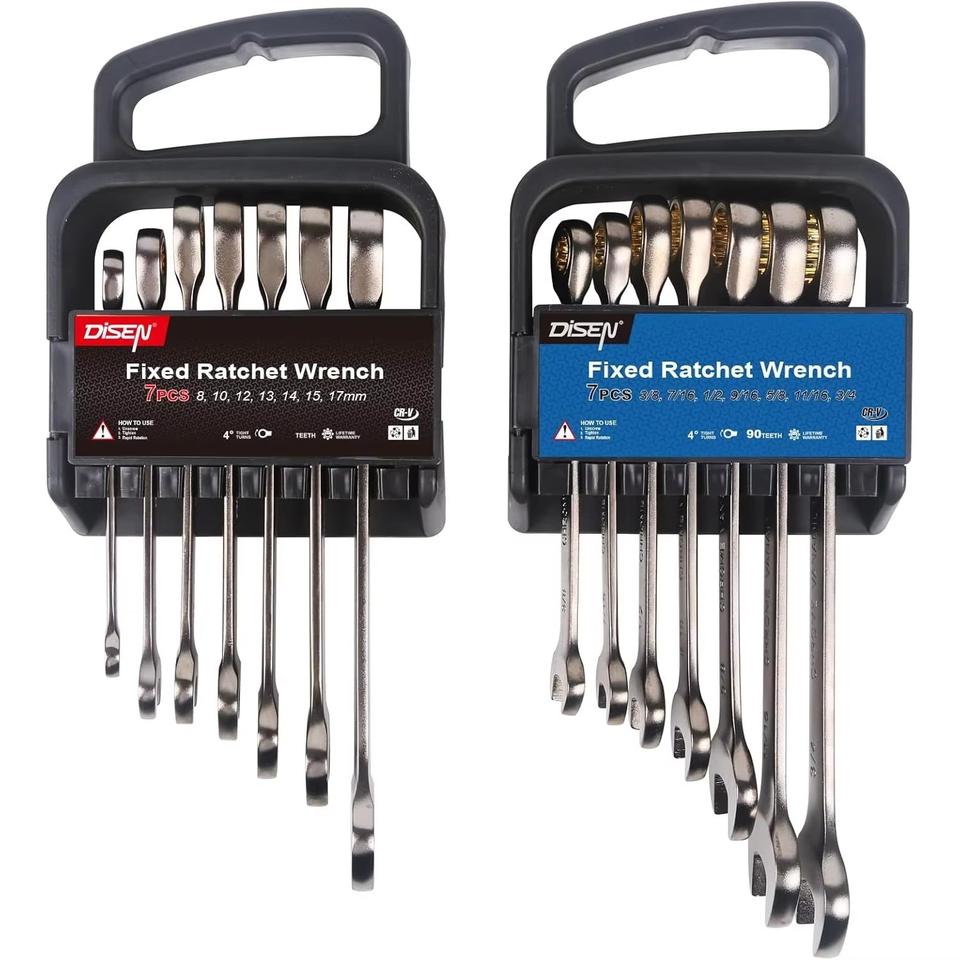 Industrial Grade 17mm DISEN 14PCS 90-Tooth Sea&Metric Ratchet Wrench Set Upgraded Nickel Plating DIY Combination Wrenches Box