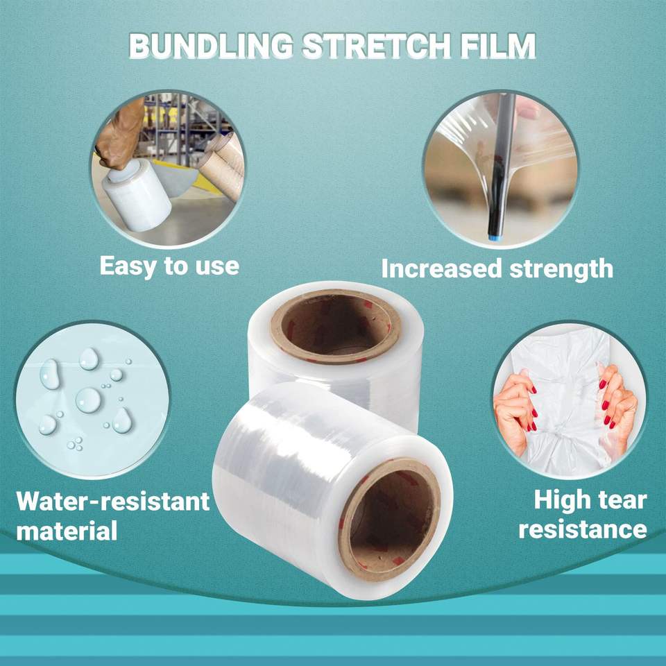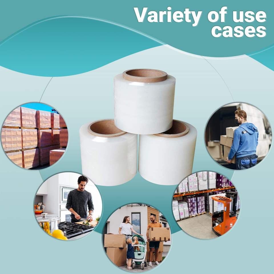 Industrial Grade Cast Film 18 Rolls 3\"x 1000' Narrow Width 80 Gauge One Handle Clear Residue Free Narrow Width Cast Stretch