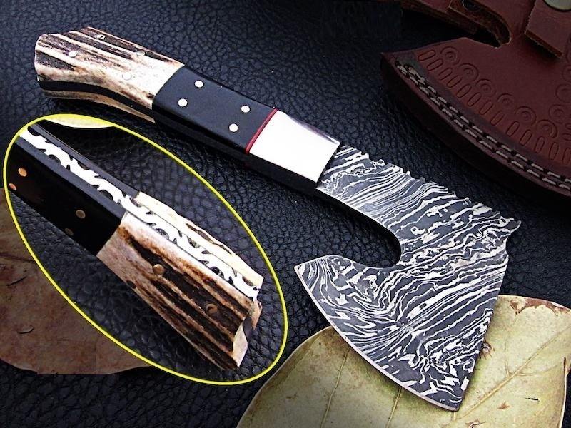 Industrial Grade Damascus Steel Axe DIY Carbon Steel Chopper with Wood Handle for Camping Outdoor Hunting Cutting