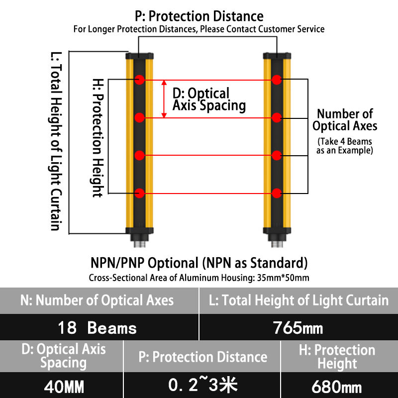 Industrial Grade Infrared Safety Light Curtain 18m Detection Distance 20/40mm Resolution Rapid Response for Machine Protection