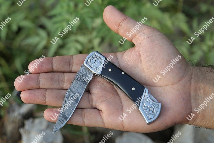 Industrial Grade OEM Custom Made Damascus Steel Drop Point Blade Slide Open Tactical Survival Utility Knife Wood Handle