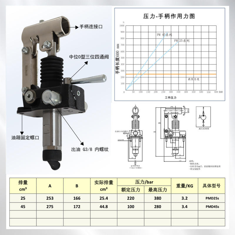 Industrial-Grade PMD25s-45s Hydraulic Manual Pump Source Factory Hand-Operated with Quality Assurance
