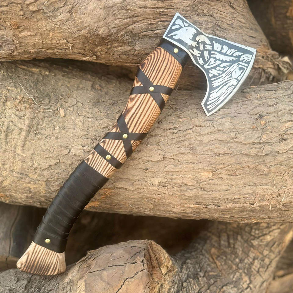 Industrial Historical Viking Axe Handcrafted Steel Head Wooden Handle Leather Grip High Quality Traditional Nordic Themed Gift