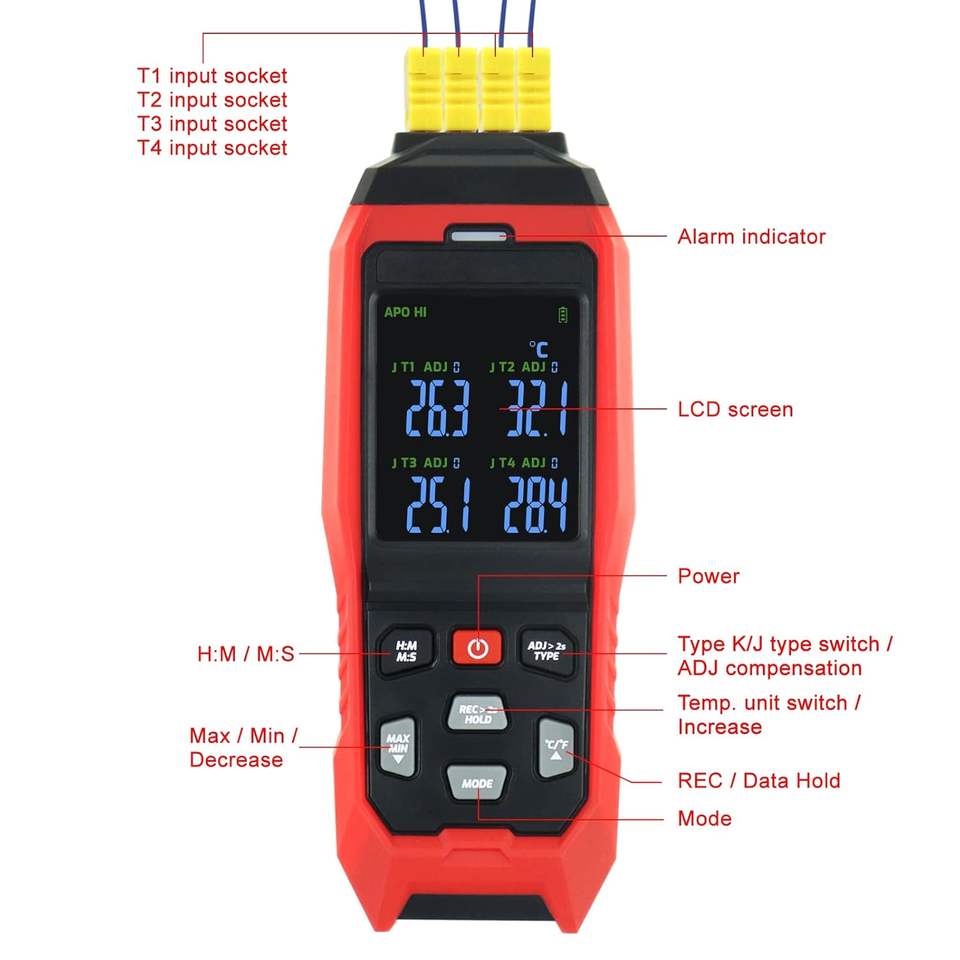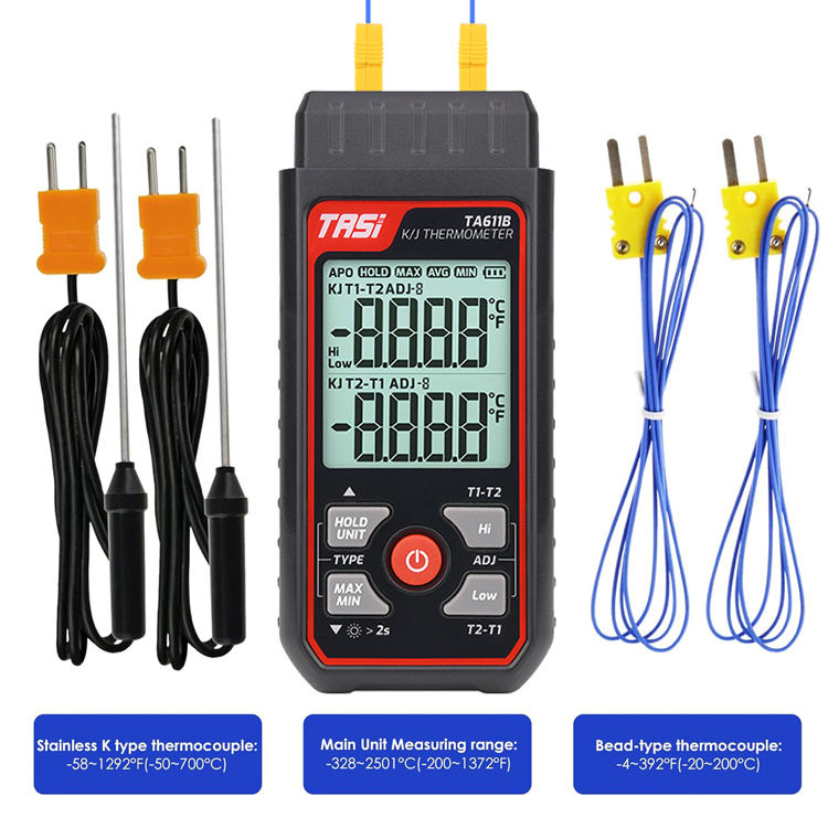 Measurement range:K-type:-200℃~+1372℃, J-type:-200℃~+1200℃