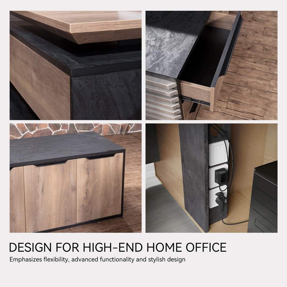 Industrial Modern Executive Desk Set with Credenza, Large CEO Office Desk for US Dealers, KD Packing