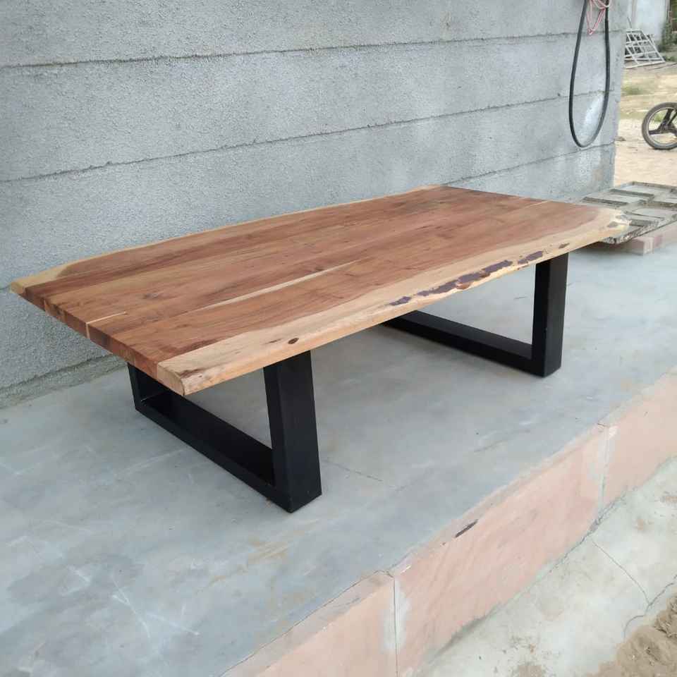 Industrial-Modern Live Edge Teak Coffee Table Solid Wood Extendable for Living Room Use Home Furniture