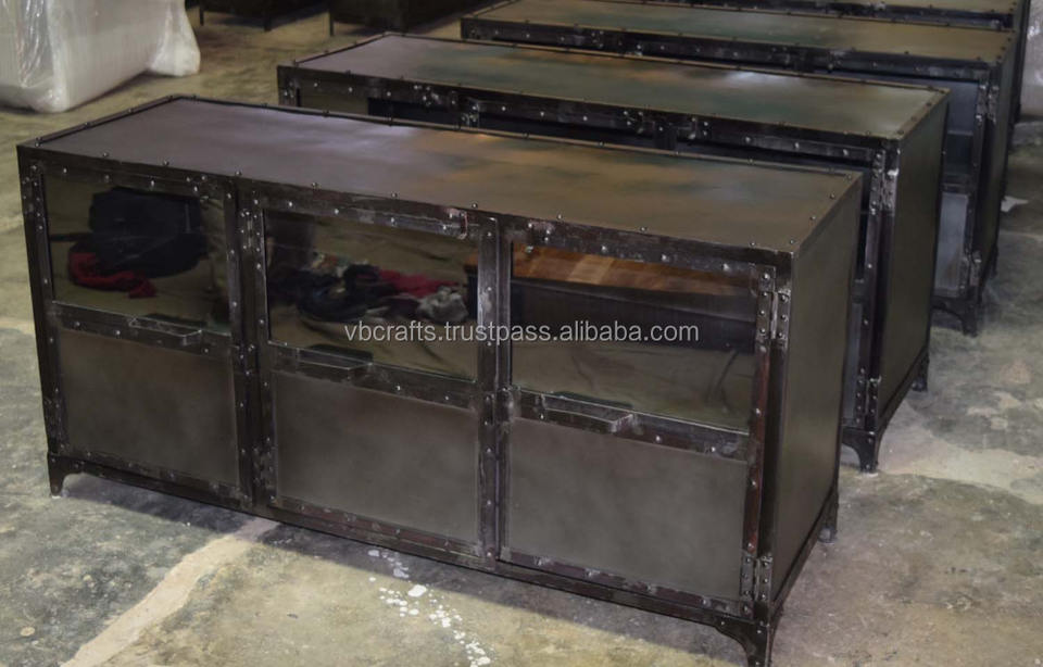 Industrial Modern Style European Metal Iron Sturdy Glass Door Display Storage Office Apartment Home Living Room Cabinet