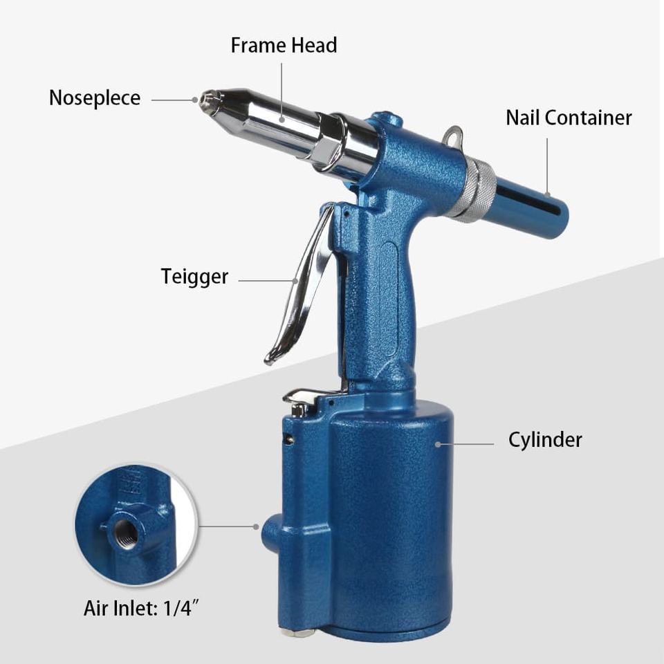 Industrial Pneumatic Hydraulic Riveter for 2.4, 3.2, 4.0, and 4.8mm Rivets