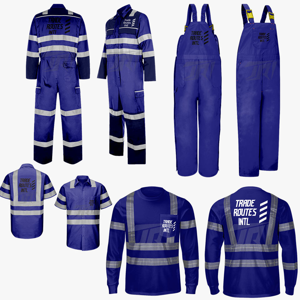 Custom Bulk Industrial Safety Set Waterproof Reflective Polyester Overall Button-Up Bib Shirt Crew Necks Protective Workwear