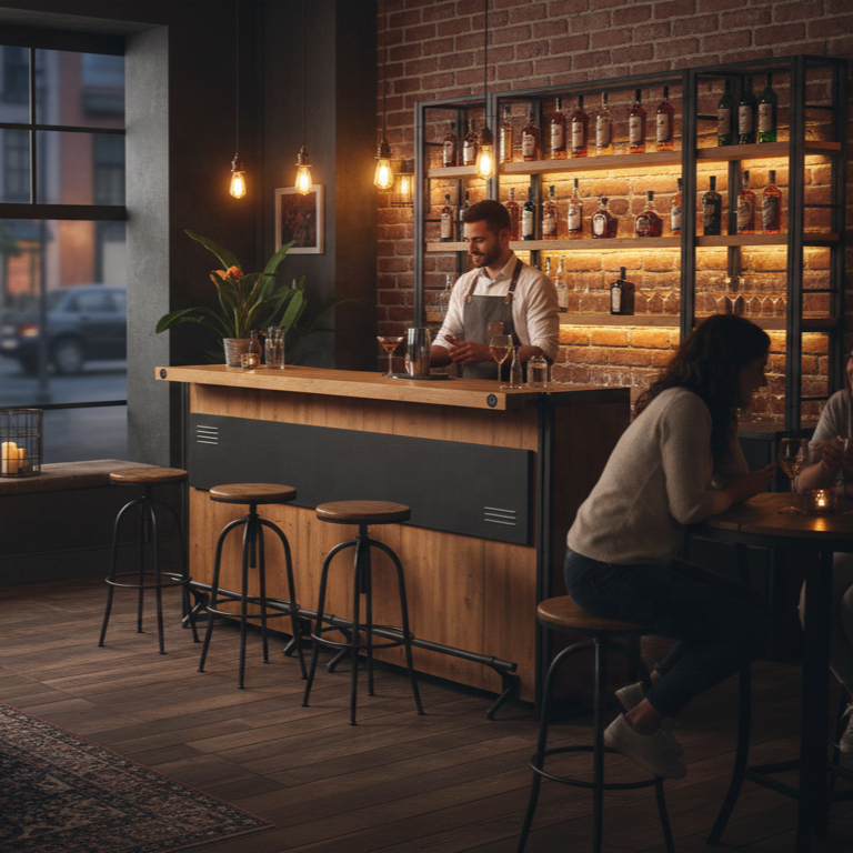 Industrial Solid Wood Bar Counter & Unit | Modern Commercial Bar Furniture for Restaurants & Cafes