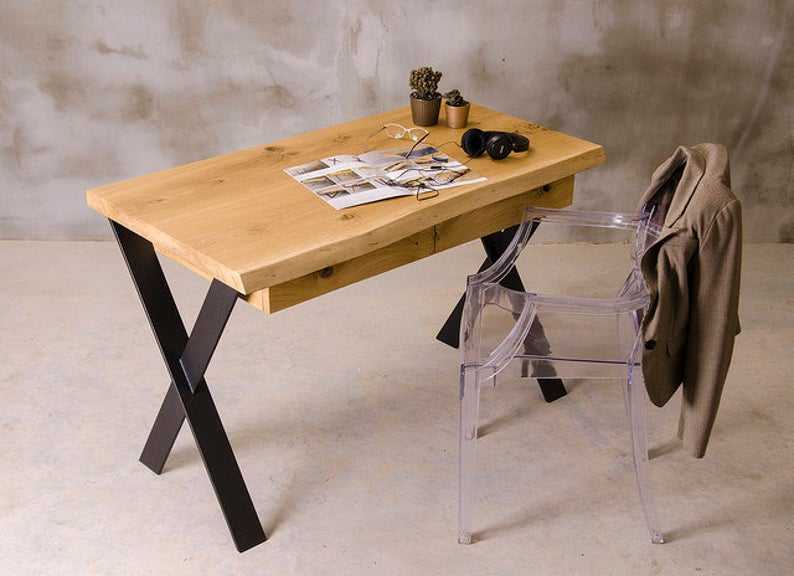 Modern Industrial Style Live Edge Solid Wooden Writing Desk with Two Drawers, Console Tables, Study Table, Computer Table